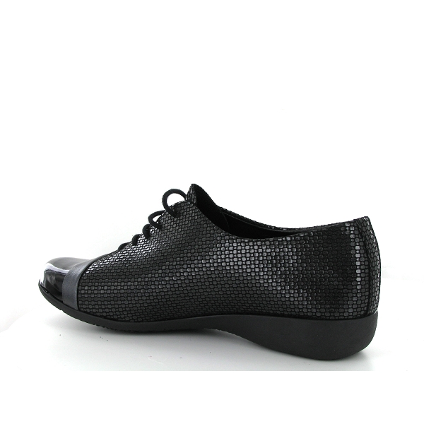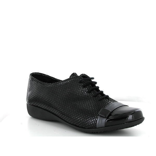 Hirica est chez Breuil chaussures. Derby Lili femme cuir noir avec fantaisie vernis sur le bout du pied . Modèle souple bien emboitant et confortable . Les clientes de Breuil chaussures recommandent la pointure pour Lili de Hirica.