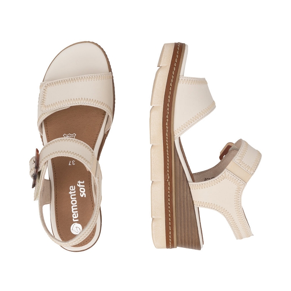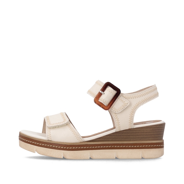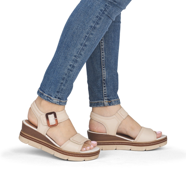 Pour se sentir libre, adopter Remonte !!! Remonte D2L58 60 est un nu pieds femme en cuir beige. Cette chaussure à double velcros habillera très bien votre pied et vous apportera un bon maintien. Idéale pour tous les jours grâce à sa voute plantaire. Cette paire de chaussures est munie d'un talon compensé pour plus de confort et d'une semelle cuir. Nous vous recommandons de choisir votre pointure pour les chaussures Remonte. Livraison rapide, chez-vous en 48h.