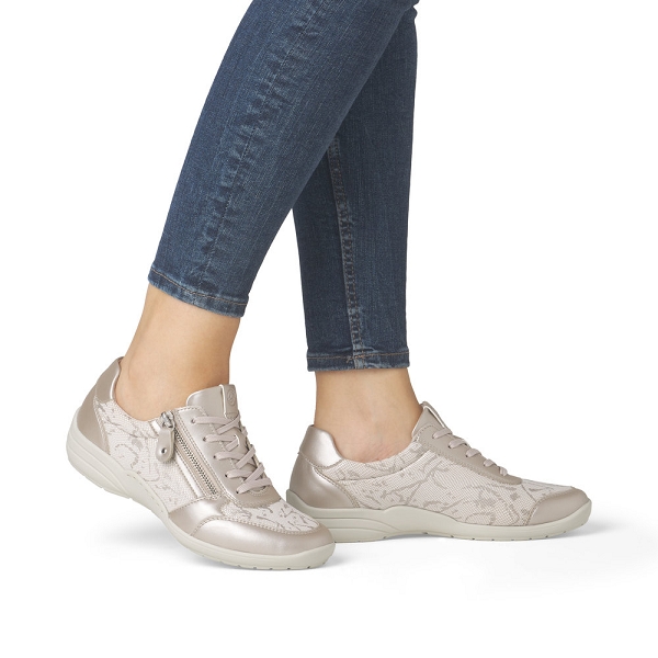 Pour se sentir libre, adopter Remonte !!! A decouvrir tennis R7637 80métalilque de la marque Remonte. Cette chaussure basse à lacets habillera très bien votre pied et vous apportera un bon maintien. Idéale pour tous les jours grâce à une semelle intérieure en cuir, elle est munie d'un léger talon compensé pour plus de confort . Ce modèle de chez Remonte est doté d'une semelle amovible. Une fermeture est également présente pour apporter un petit look sympa et surtout pour vous permettre de les chausser facilement et rapidement. Nous vous recommandons de choisir votre pointure pour les chaussures Remonte.
