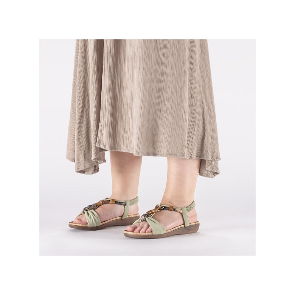 Rieker, la marque au trés bon rapport qualité prix! Nu-pieds femme RIEKER V7568 52 textile vert. Ce nu-pieds Rieker élastiqué au niveau de la cheville sera facile à chausser et vous apportera un bon maintien. Cette sandale est munie d'un petit talon pour améliorer votre confort. Ce modèle sera parfait pour les beaux les jours. De plus il sera idéal pour féminiser vos tenues d'été avec ses brides drapées croisées qui rendent le modèle original. Vous pourrez le découvrir sur Rieker-webstore.fr. Nous vous conseillons de choisir vos Rieker à la pointure. Livraison rapide, chez-vous en 48h.