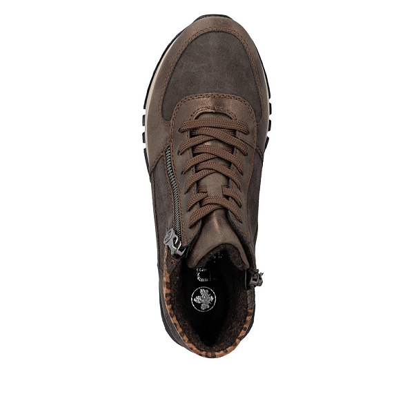 Rieker, la marque au trés bon rapport qualité prix! Tennis montante femme Rieker 49040 24 montante marron. Cette basket Rieker à lacets tige haute (8 cm) avec semelle compensé vous apportera un confort de marche. Cette tennis est munie d'une fermeture zip ce qui permettra de les chausser plus facilement. Ce modèle s'adaptera à tous les pieds avec sa semelle amovible. Idéale pour cet hiver avec sa membrane imperméable "Rieker Tex" . Nous vous conseillons de choisir vos Rieker à la pointure.