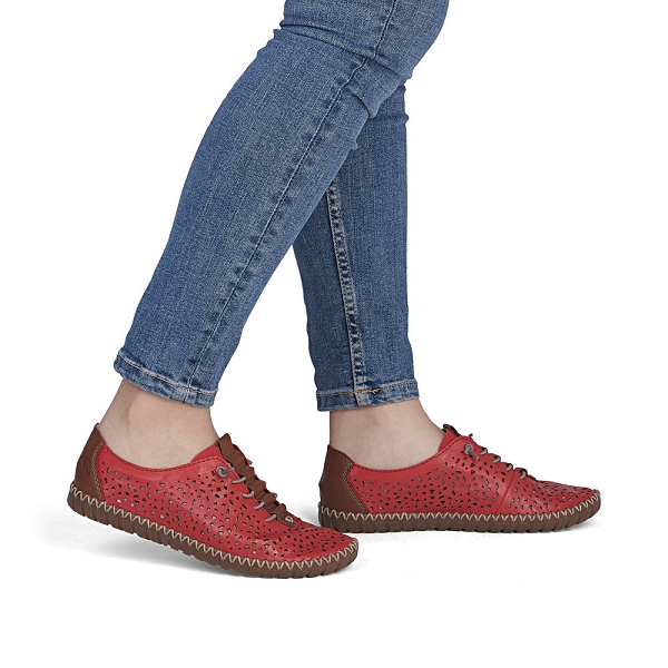 Rieker, la marque au trés bon rapport qualité prix! RIEKER M2856 33 est une tennis femme en cuir rouge. Cette tennis Rieker sera idéale pour les femmes qui veulent adopter un style sportswear. Cette chaussure à enfiler est à découvrir chez Rieker-webstore.fr sera facile à chausser grâce a son lacet élastique sur le coup de pied. Ce modèle perforé fera vite partie de votre quotidien avec sa première de propreté souple. Nous vous conseillons de choisir vos Rieker à la pointure.Livraison rapide, chez-vous en 48h.