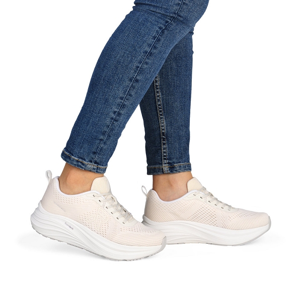 Rieker, la marque au trés bon rapport qualité prix! Tennis femme Rieker W4101 60 textile beige. Cette chaussure est munie d'une semelle compensé pour un confort optimal et un amorti remarquable ainsi que d'une semelle amovible mémo cup. Ce modèlet muni de lacets pour vous permettre de les chausser facilement tout en vous apportant un bon maintien. Très souple et légère cette tennis sera idéale à porter tous les jours et s'accordera facilement avec vos tenues d'été en apportant une pointe de fantaisie !!! Nous vous conseillons de choisir vos Rieker à la pointure.